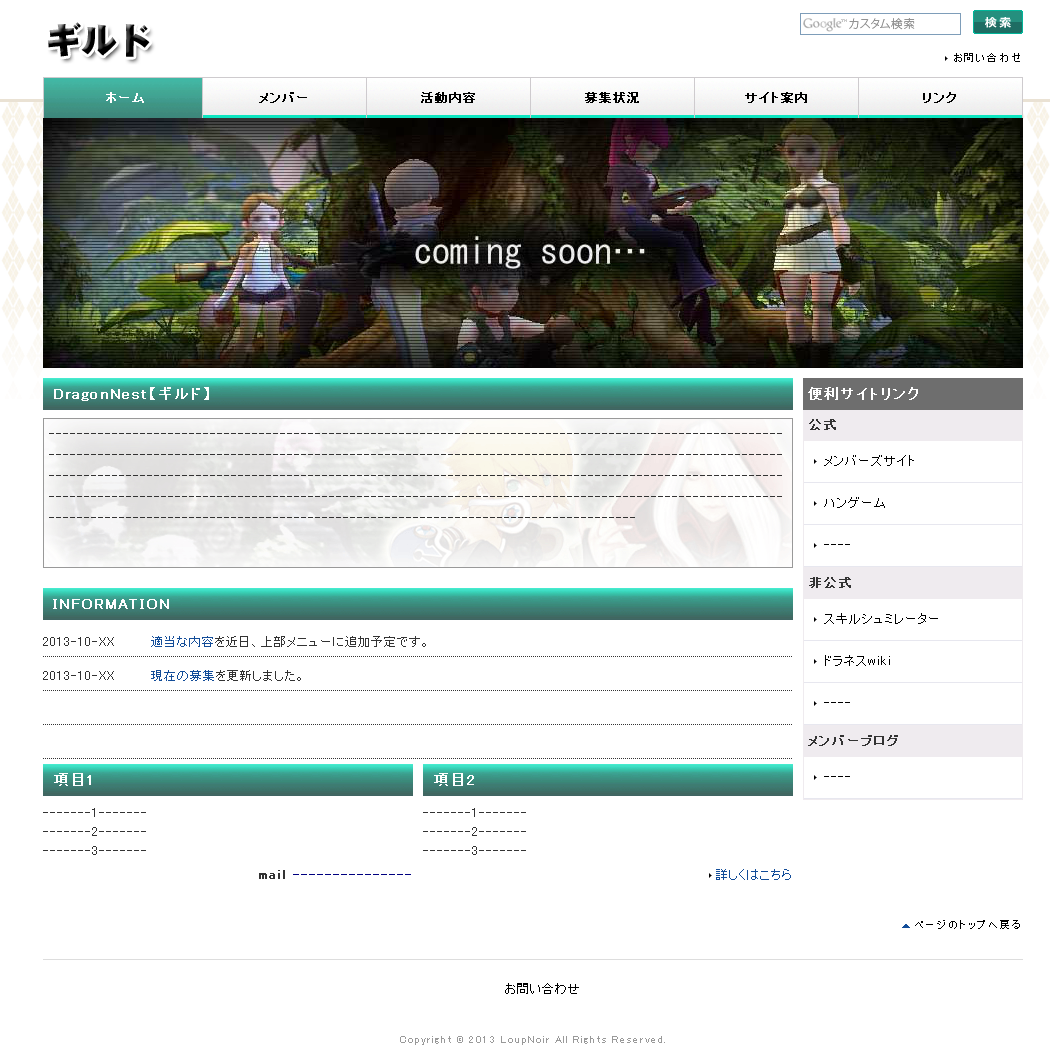 なんちゃってギルドホームページの雰囲気テンプレートをカスタム作成してみました。