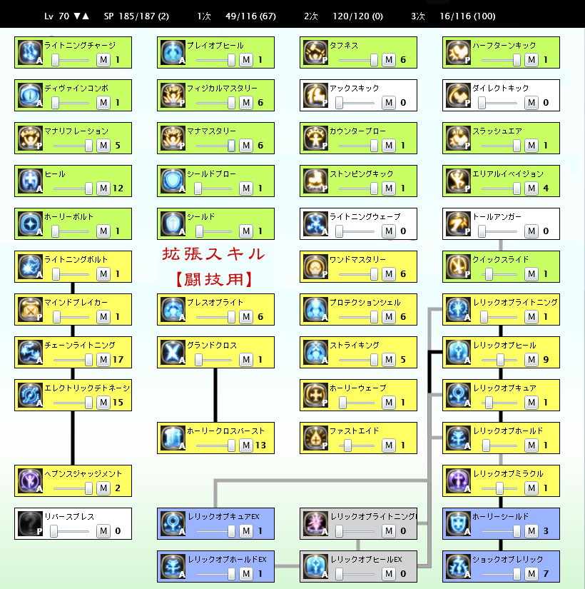 「攻撃スキル?ジャッジ2 ミラクル2 ショックM 他は・・・1だ(キリ」